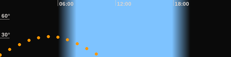 | Höchster Stand (Kulmination) | 05:05 Uhr (h = 32,6°) |