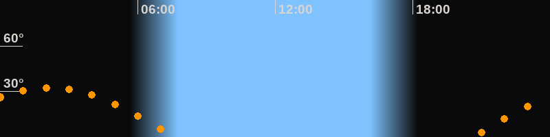 | Höchster Stand (Kulmination) | 02:08 Uhr (h = 32,6°) |