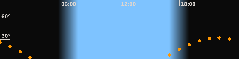 | Untergang | 03:19 Uhr im Westen (αAz = 260,1°) |