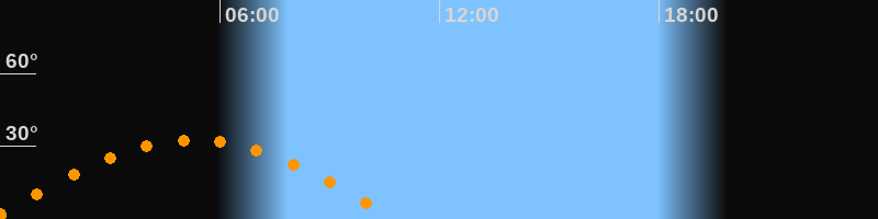 | Höchster Stand (Kulmination) | 05:16 Uhr (h = 32,6°) |