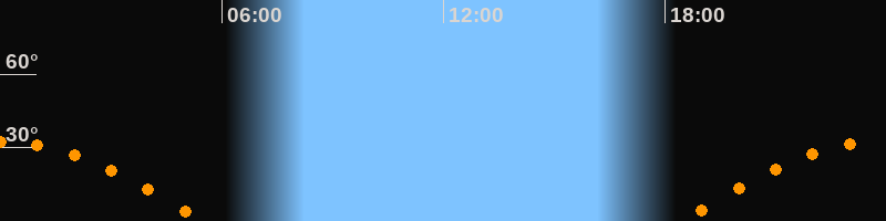 | Aufgang | 18:26 Uhr im Osten (αAz = 99,9°) |