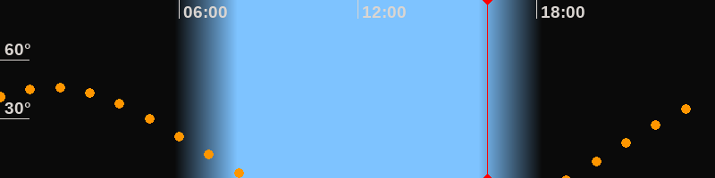 | Aufgang | 19:03 Uhr im Osten (αAz = 78,5°) |