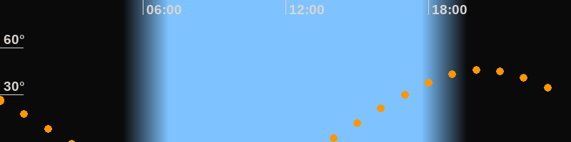 | Aufgang | 13:40 Uhr im Osten (αAz = 78,5°) |