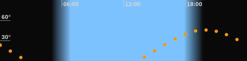 | Aufgang | 13:20 Uhr im Osten (αAz = 78,5°) |