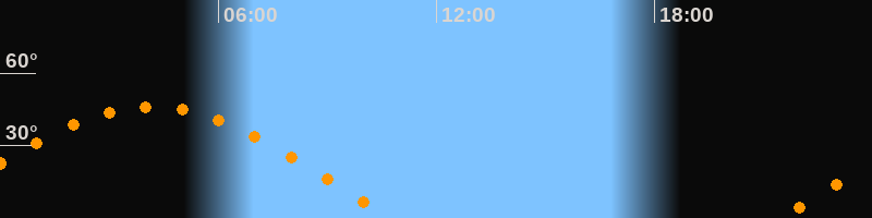 | Höchster Stand (Kulmination) | 04:09 Uhr (h = 46,1°) |