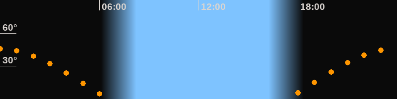 | Aufgang | 17:18 Uhr im Osten (αAz = 78,5°) |