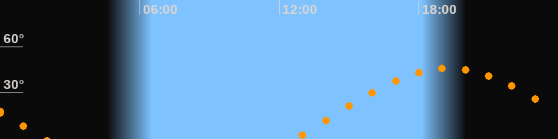 | Aufgang | 12:40 Uhr im Osten (αAz = 78,5°) |