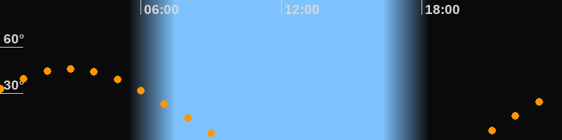 | Aufgang | 20:17 Uhr im Osten (αAz = 78,5°) |