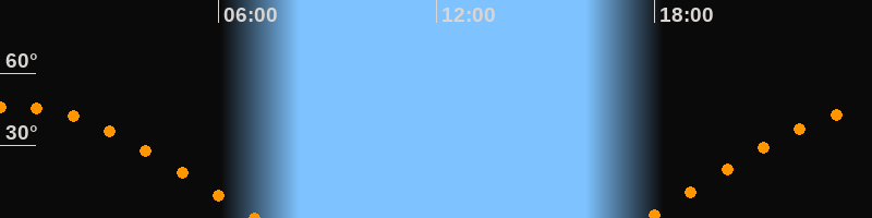 | Aufgang | 17:47 Uhr im Osten (αAz = 78,5°) |