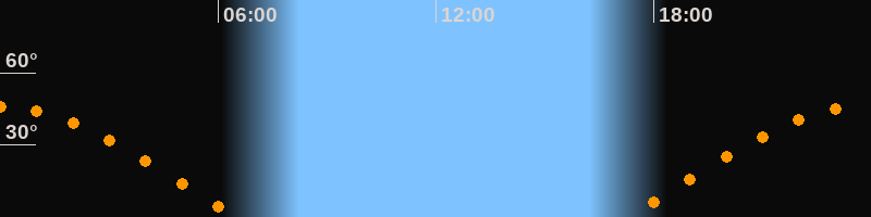 | Aufgang | 17:15 Uhr im Osten (αAz = 78,5°) |