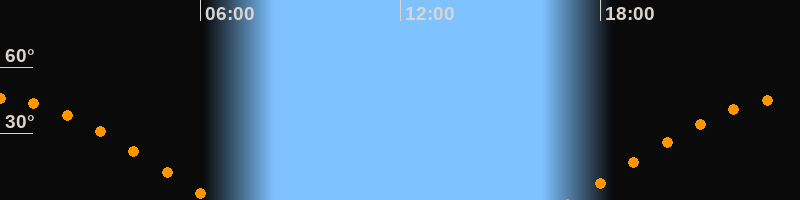 | Aufgang | 17:08 Uhr im Osten (αAz = 78,5°) |
