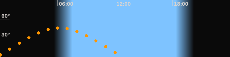 | Höchster Stand (Kulmination) | 06:11 Uhr (h = 46,1°) |
