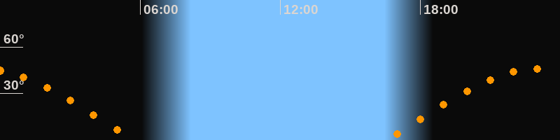 | Aufgang | 16:30 Uhr im Osten (αAz = 78,5°) |