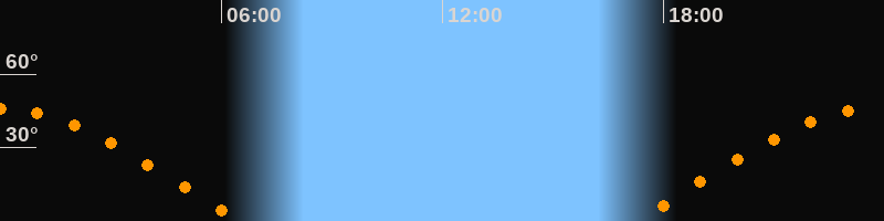 | Untergang | 06:31 Uhr im Westen (αAz = 281,5°) |
