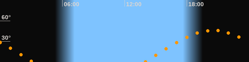 | Aufgang | 13:54 Uhr im Osten (αAz = 78,5°) |