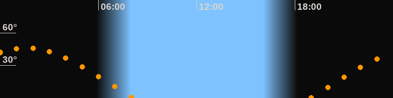 | Aufgang | 18:54 Uhr im Osten (αAz = 78,5°) |