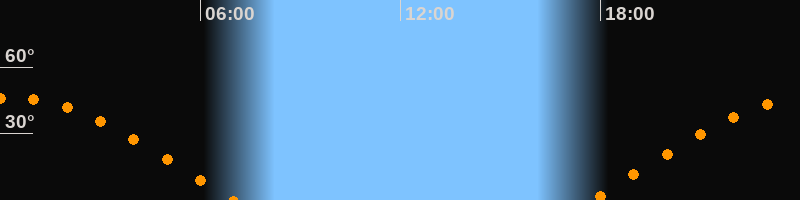 | Aufgang | 17:43 Uhr im Osten (αAz = 78,5°) |