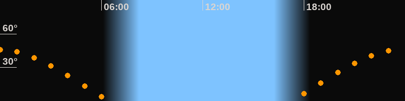 | Aufgang | 17:12 Uhr im Osten (αAz = 78,5°) |