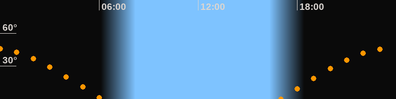 | Untergang | 06:13 Uhr im Westen (αAz = 281,5°) |