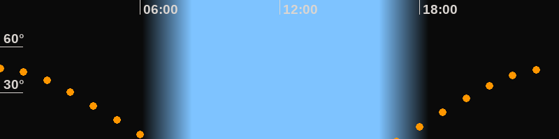 | Untergang | 06:22 Uhr im Westen (αAz = 281,5°) |