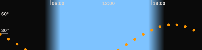 | Aufgang | 13:54 Uhr im Osten (αAz = 78,5°) |