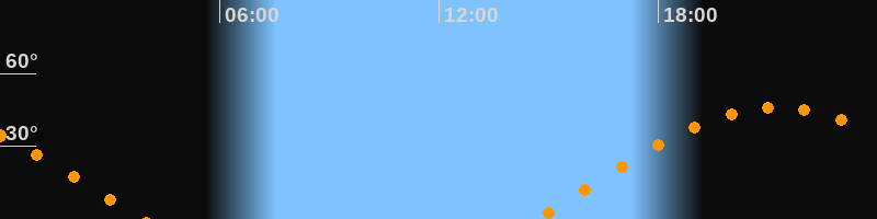| Aufgang | 14:38 Uhr im Osten (αAz = 78,5°) |