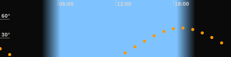 | Aufgang | 12:13 Uhr im Osten (αAz = 78,5°) |