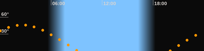 | Aufgang | 19:54 Uhr im Osten (αAz = 78,5°) |