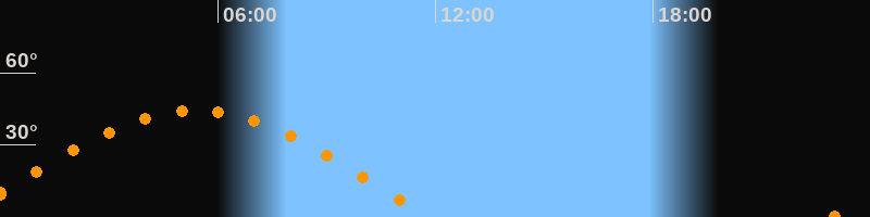 Höchster Stand (Kulmination)05:23 Uhr (h = 44,3°)