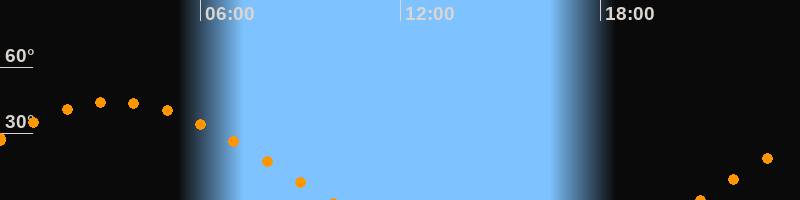 Höchster Stand (Kulmination)03:27 Uhr (h = 44,3°)