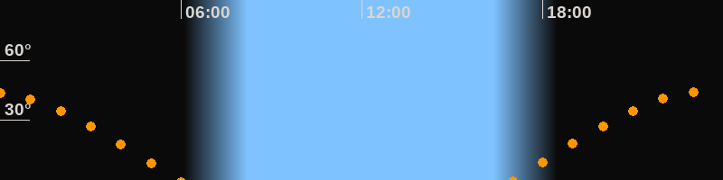 Höchster Stand (Kulmination)23:27 Uhr (h = 44,3°)