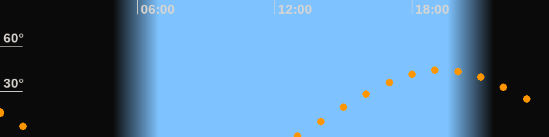 Höchster Stand (Kulmination)19:17 Uhr (h = 44,3°)