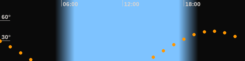 Höchster Stand (Kulmination)20:47 Uhr (h = 44,3°)
