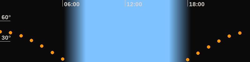 Höchster Stand (Kulmination)00:01 Uhr (h = 44,3°)