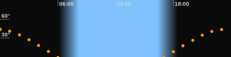 Höchster Stand (Kulmination)23:30 Uhr (h = 44,3°)