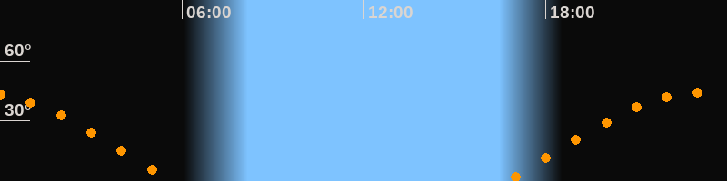 Höchster Stand (Kulmination)23:10 Uhr (h = 44,3°)
