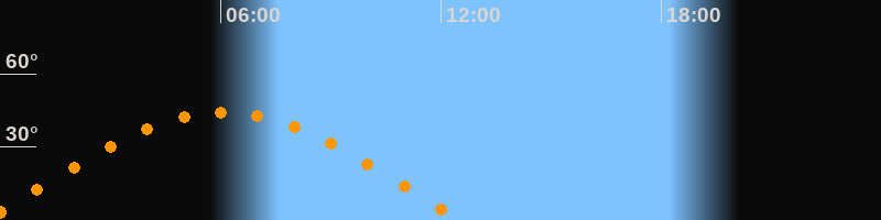 Höchster Stand (Kulmination)06:04 Uhr (h = 44,3°)