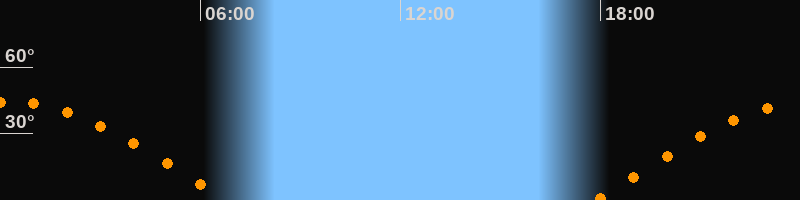 Höchster Stand (Kulmination)00:16 Uhr (h = 44,3°)