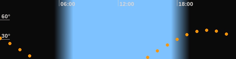 Höchster Stand (Kulmination)21:05 Uhr (h = 44,3°)