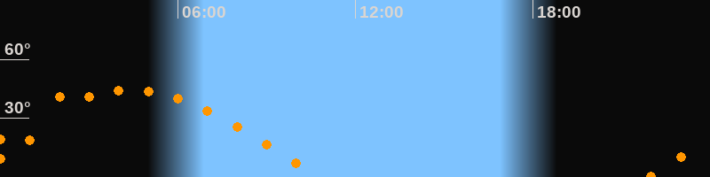 Höchster Stand (Kulmination)04:23 Uhr (h = 44,3°)
