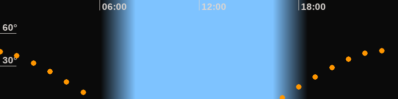 Höchster Stand (Kulmination)23:13 Uhr (h = 44,3°)