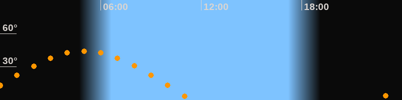 Höchster Stand (Kulmination)05:00 Uhr (h = 44,3°)
