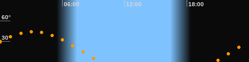 Höchster Stand (Kulmination)03:10 Uhr (h = 44,3°)