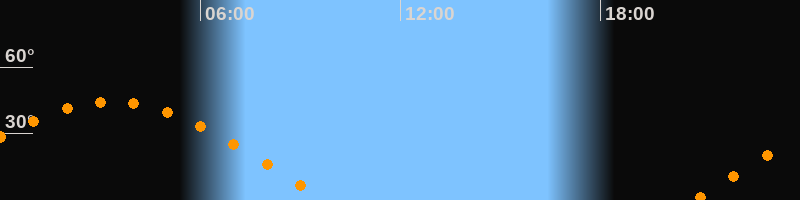 Höchster Stand (Kulmination)03:19 Uhr (h = 44,3°)