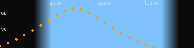 | Höchster Stand (Kulmination) | 09:12 Uhr (h = 74,5°) |