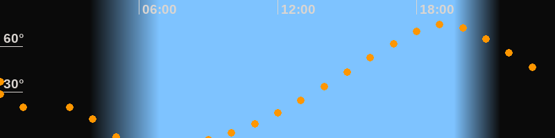 | Höchster Stand (Kulmination) | 19:11 Uhr (h = 74,5°) |