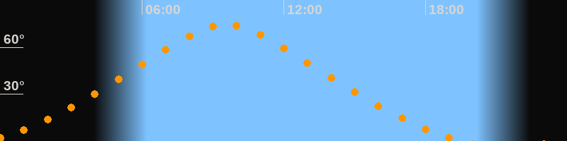 | Höchster Stand (Kulmination) | 09:33 Uhr (h = 74,5°) |