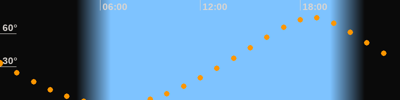 | Höchster Stand (Kulmination) | 18:44 Uhr (h = 74,5°) |