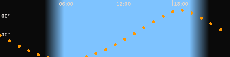 | Höchster Stand (Kulmination) | 18:49 Uhr (h = 74,5°) |