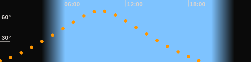 | Höchster Stand (Kulmination) | 09:35 Uhr (h = 74,5°) |